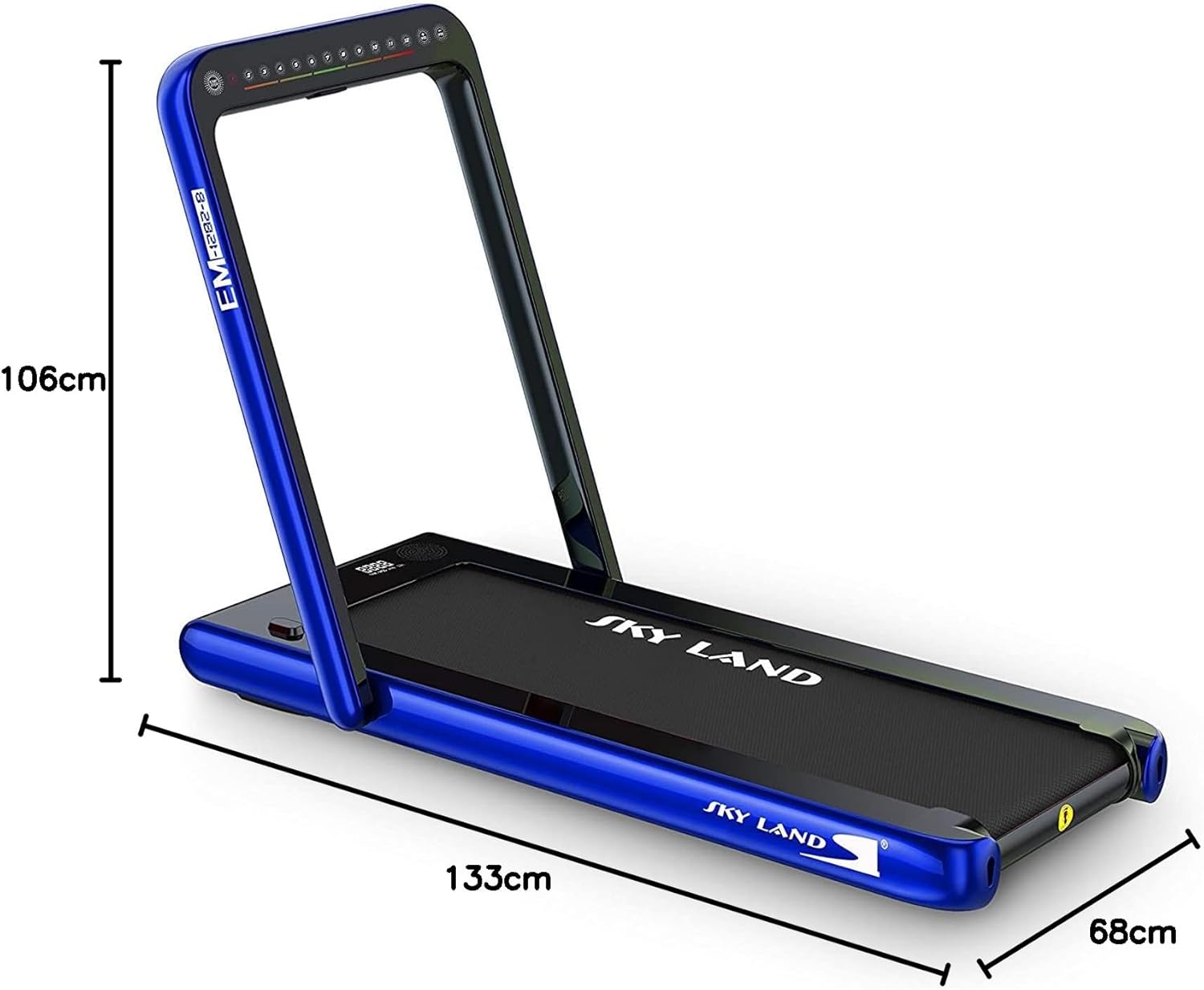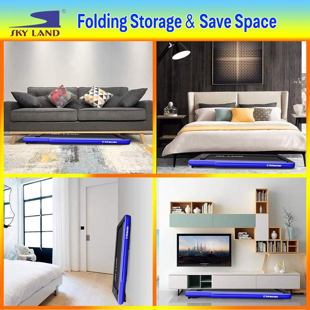 Easily store under furniture or move with built-in transport wheels. Track speed, distance, calories, steps, and time on the LED display, while Bluetooth speakers and remote control enhance convenience and motivation.