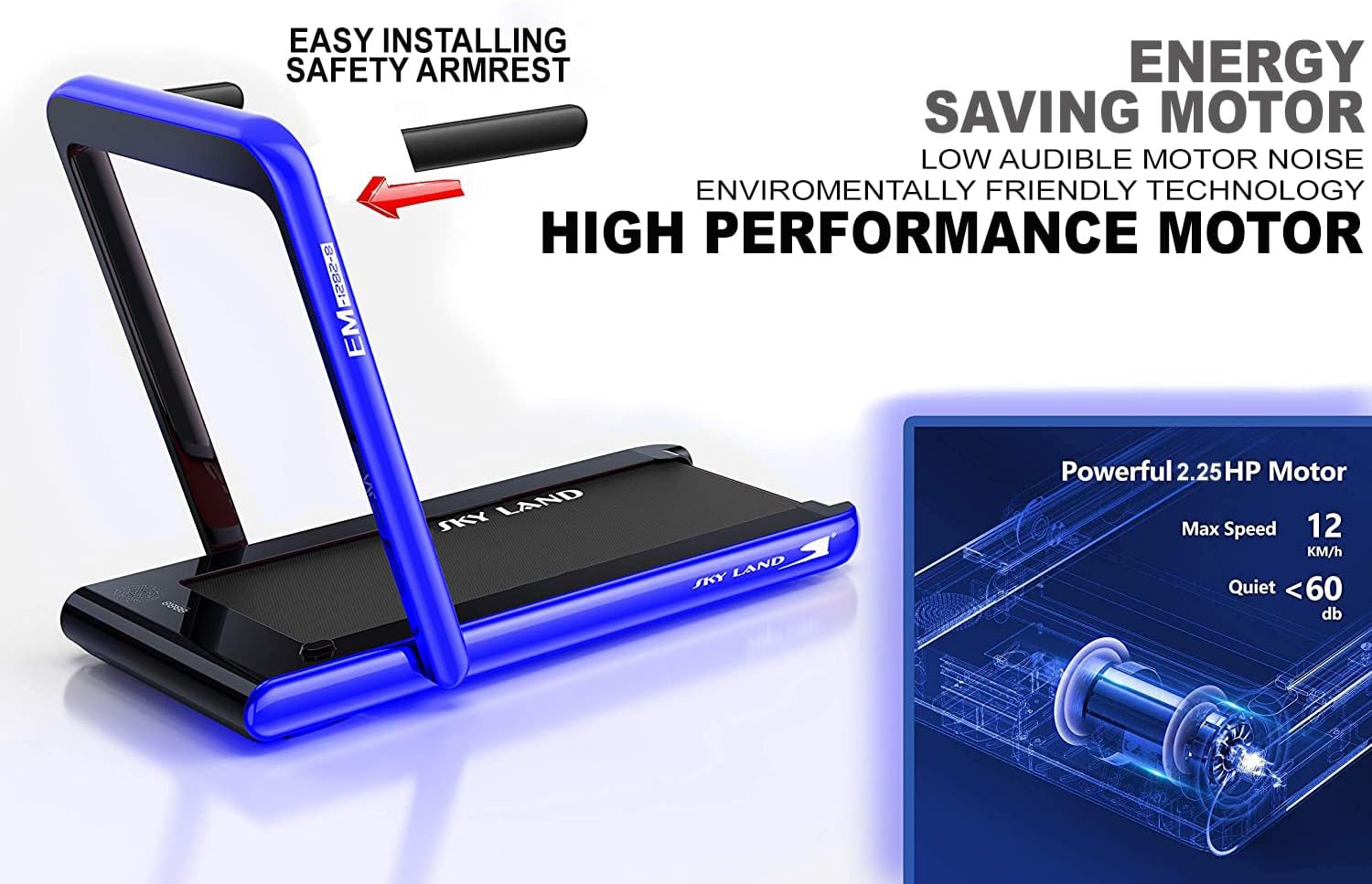 POWERFUL 2.25 HP MOTOR WITH LOW NOISE OPERATION ?C Experience smooth and quiet performance, perfect for shared spaces. The shock-absorbing belt protects joints, reducing impact during workouts.