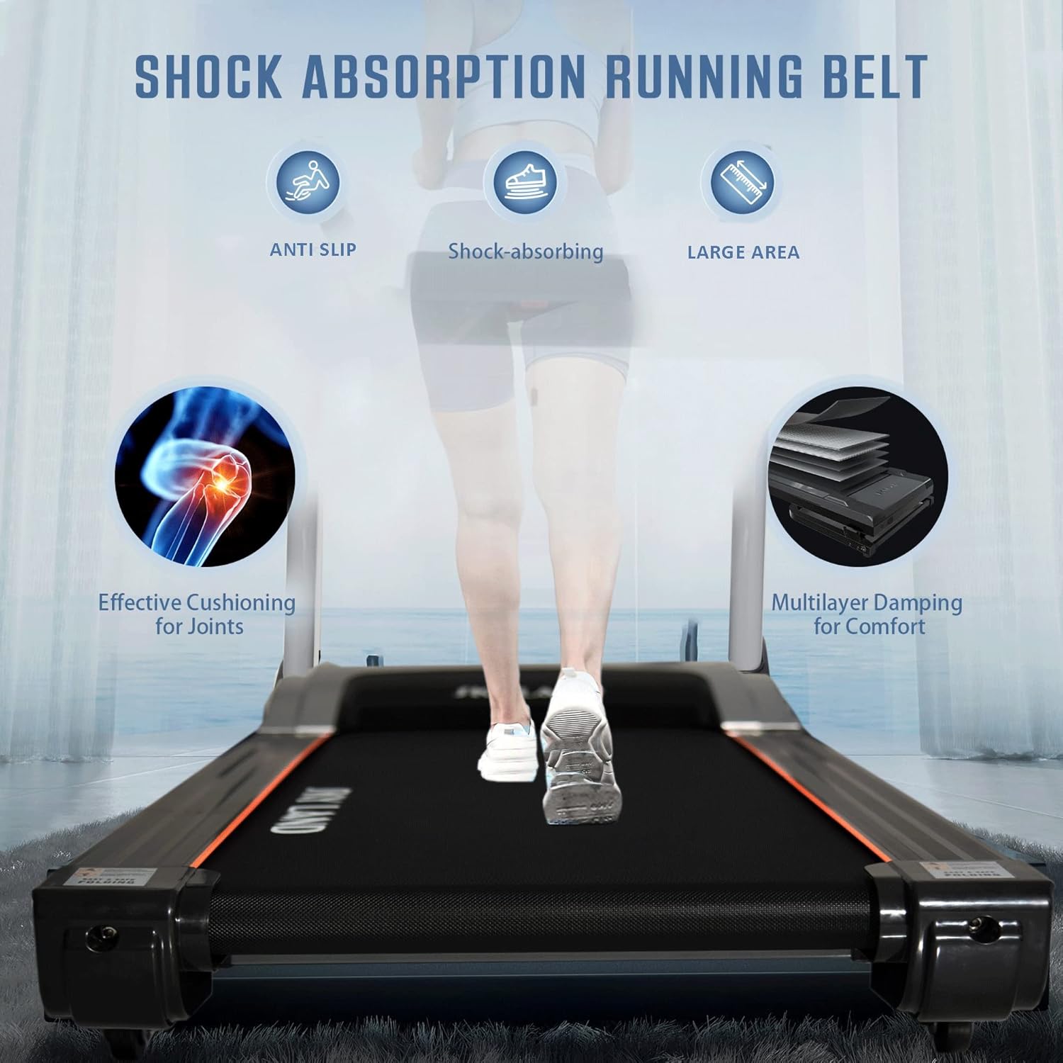 The wide running belt ensures comfort and control, making it ideal for daily walking, jogging, and running at home.