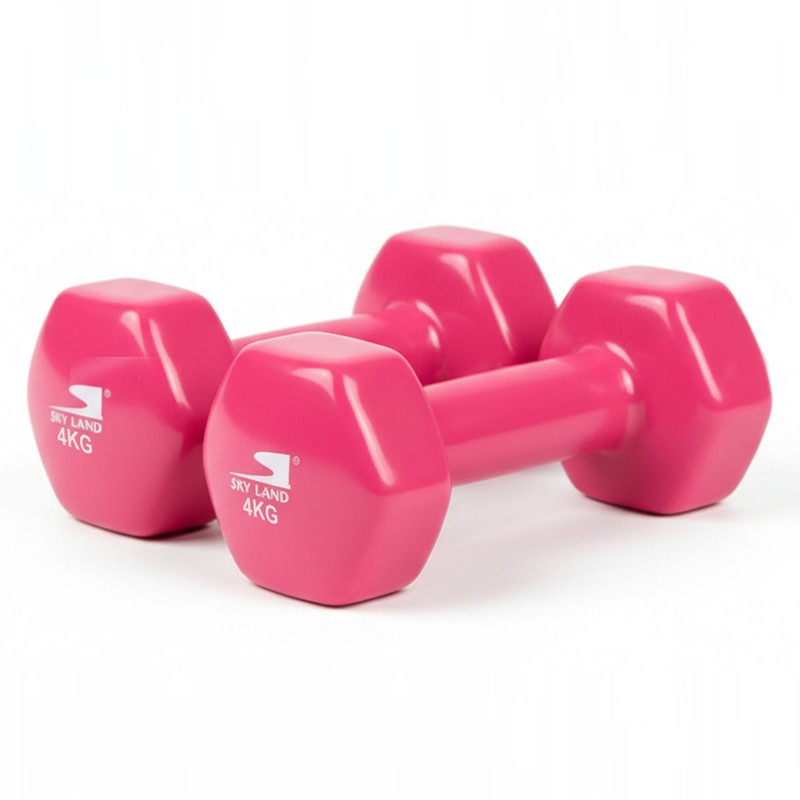 Enhance your fitness with this 8kg set of two 4kg Ergonomic Vinyl Dumbbells. This pink pair features an anti-roll hex design and a floor-safe vinyl coating, making it perfect for comfortable, scratch-free home workouts like yoga and toning.