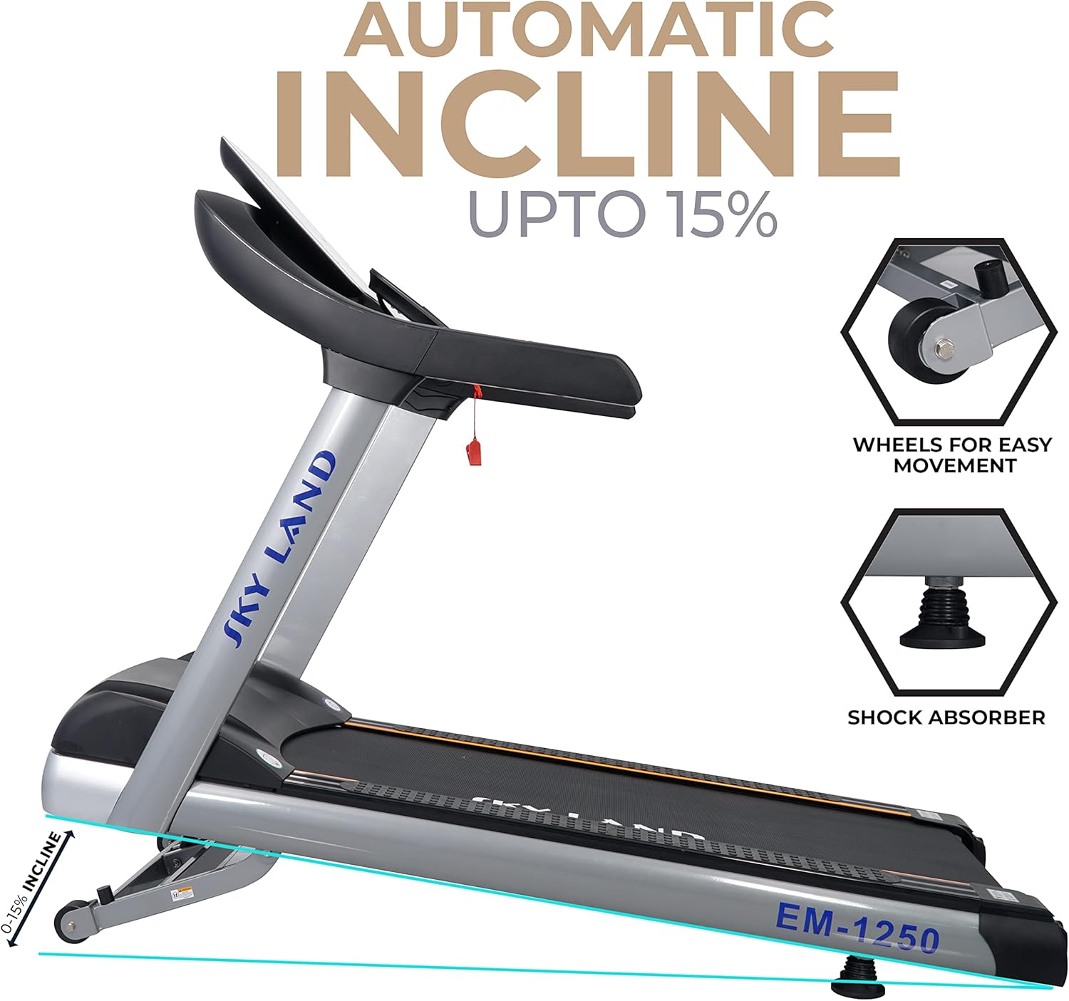 It has a 15-level automatic incline and supports 180 kg for walking and 155 kg for running.