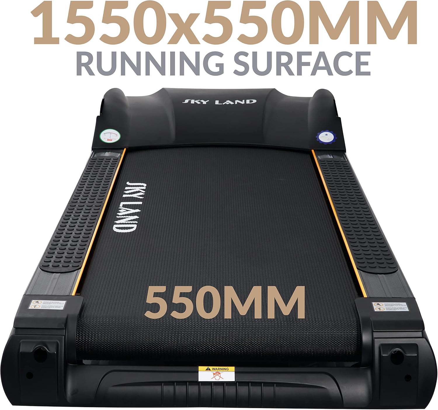 It has a 4.0 HP continuous AC motor with 8.0 HP peak output, speeds of 1?C22 km/h, and a 1550 x 550 mm running area.