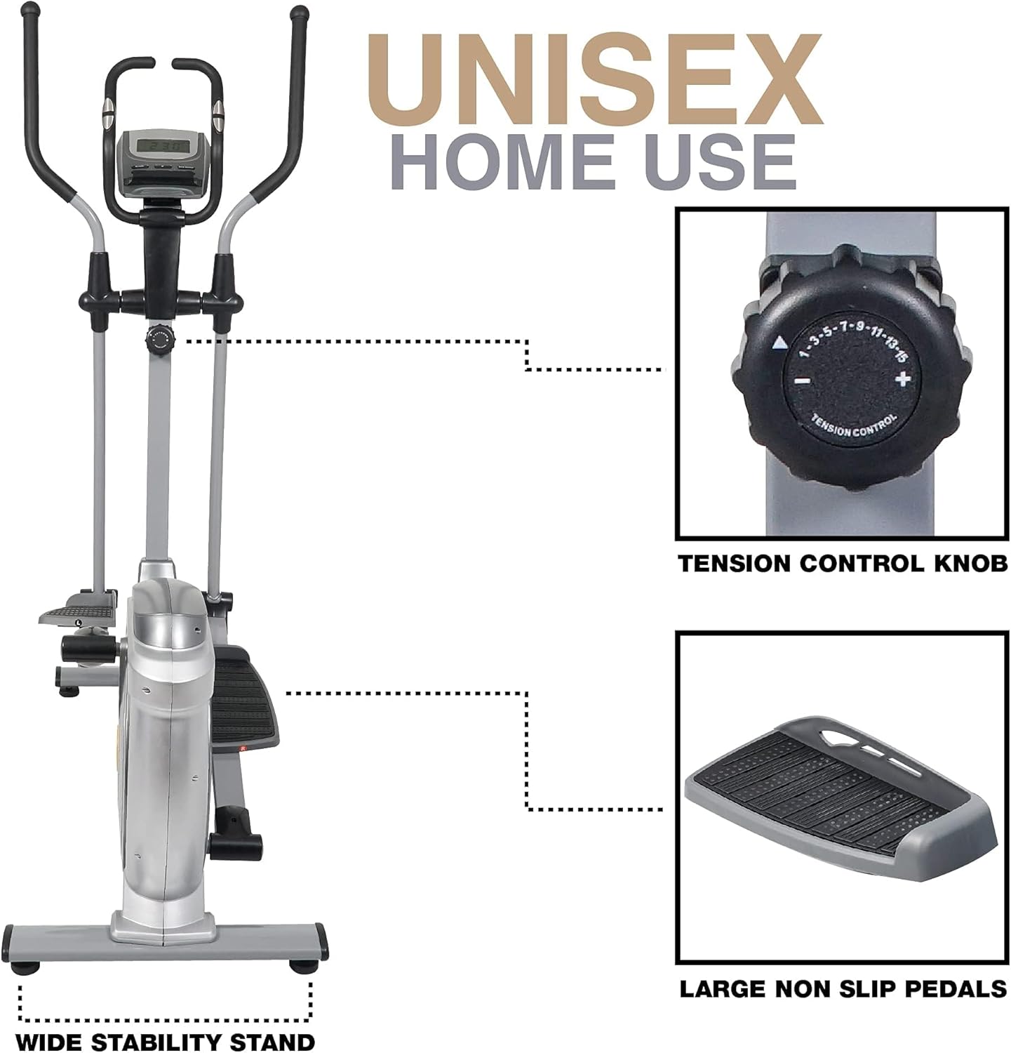Elliptical Cross Trainer, Magnetic Exercise Machine with 15 Resistance Levels, LCD Digital Monitor, Transport Wheels & 250 lbs Weight Capacity, Home Gym Fitness Equipment EM-1541