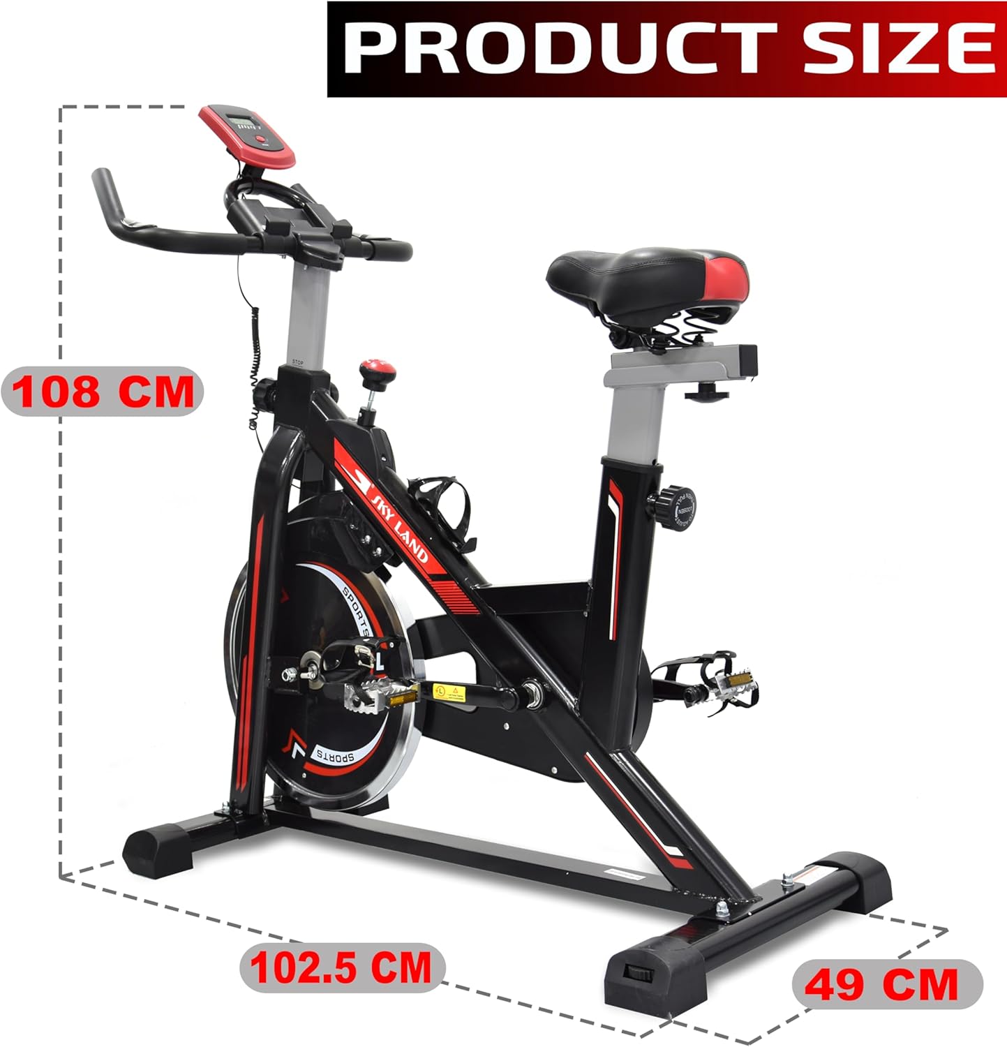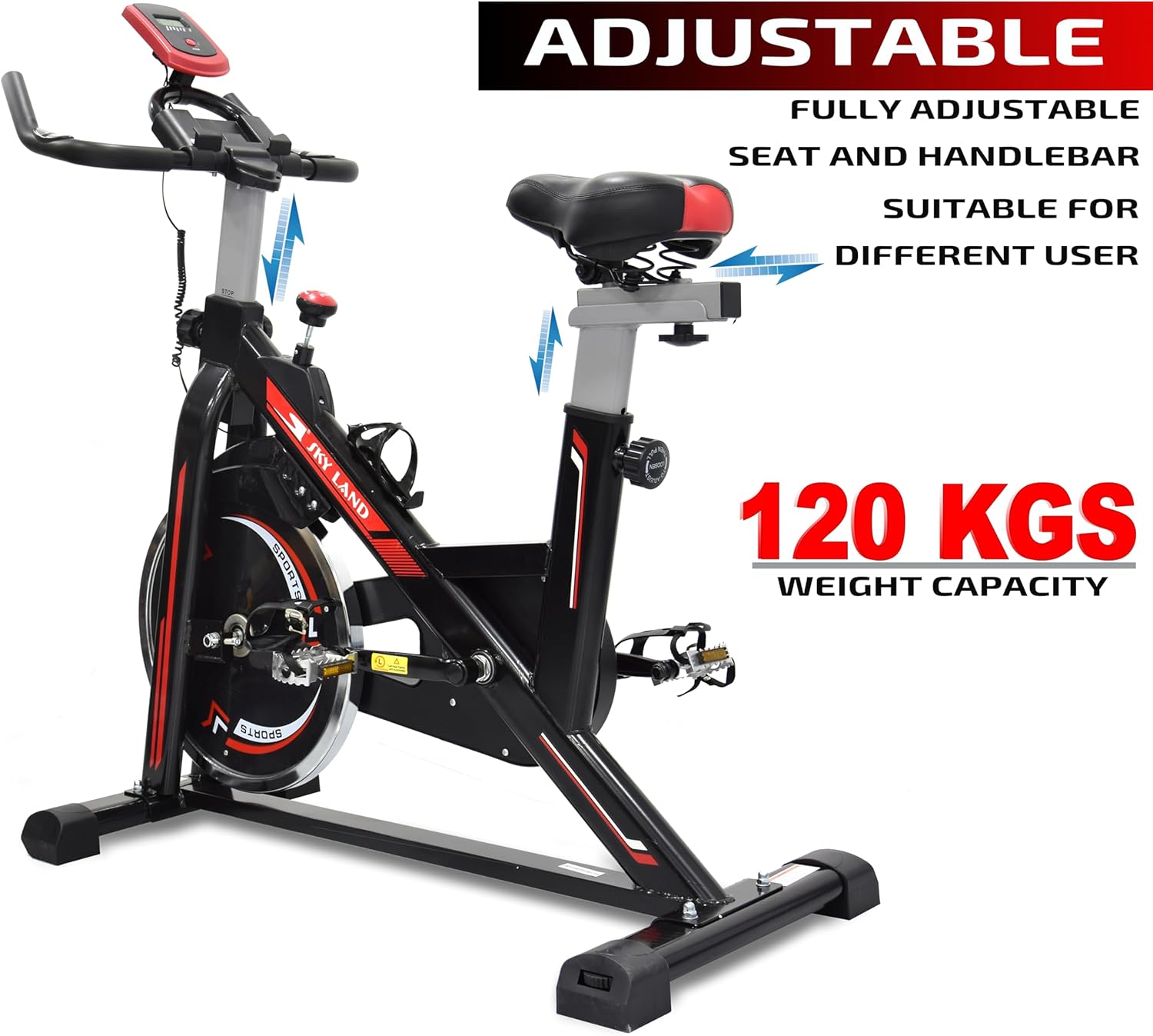 FULL-BODY WORKOUT SPIN BIKE ?C Engage your entire body with the SKY LAND Spin Bike, designed for low-impact cardio and strength training. Ideal for beginners to advanced users aiming to achieve fitness goals from home.