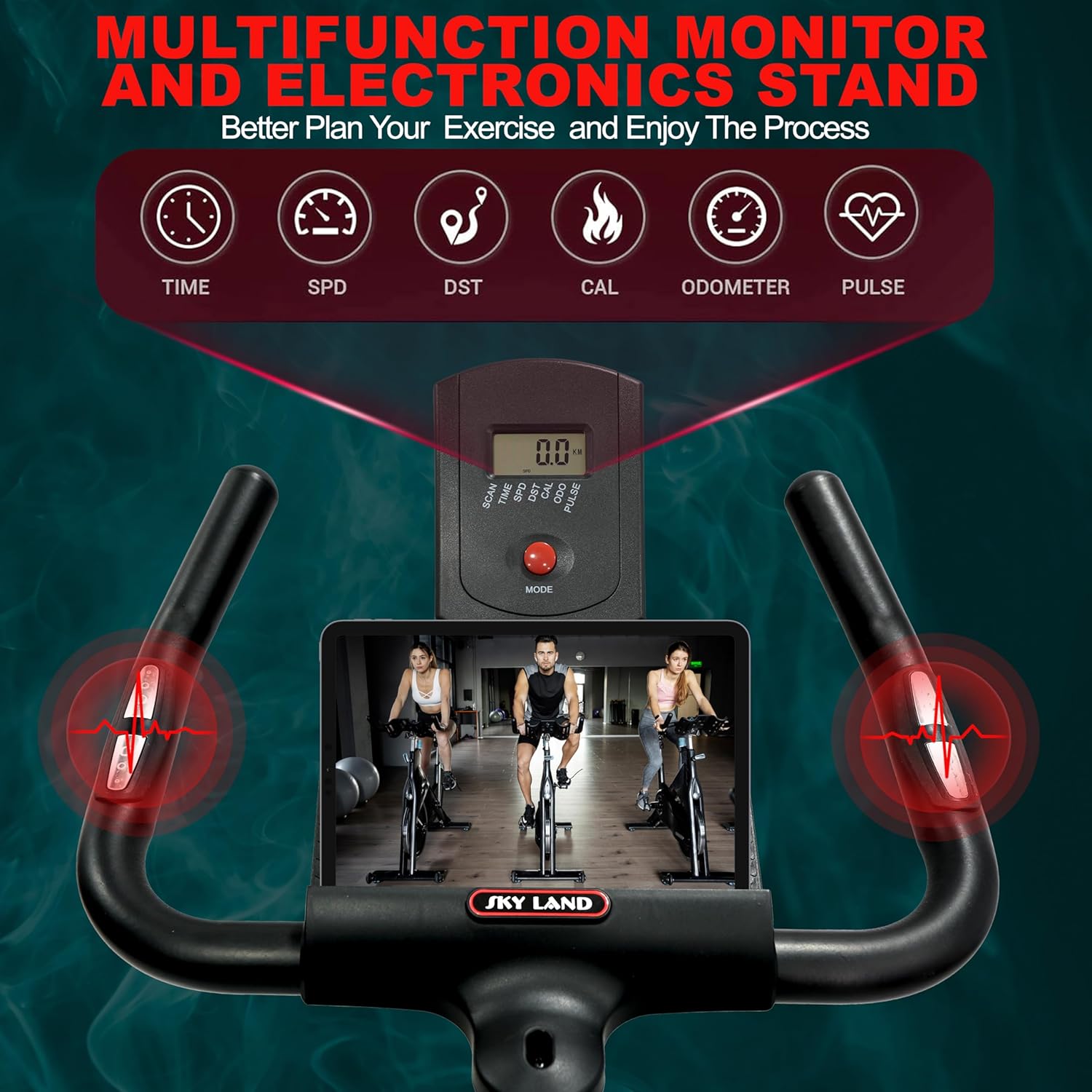 SMART INDOOR CYCLING EXPERIENCE: Connect your SKY LAND Exercise Bike to the Fitshow App via Bluetooth for real-time tracking of your workout metrics including distance, time, speed, calories burned, heart rate, and odometer. Perfect for home gym enthusiasts aiming to boost cardio and strength training.