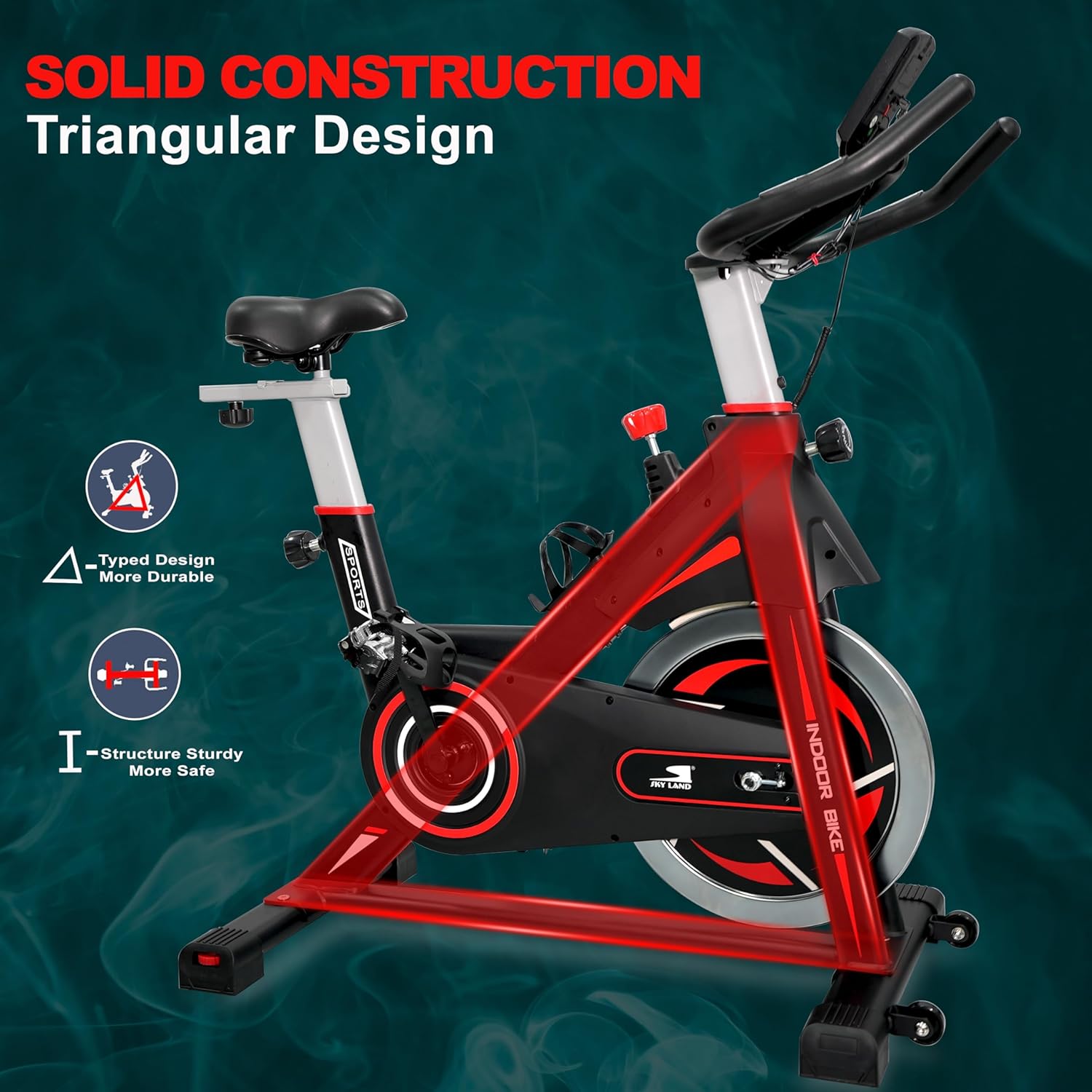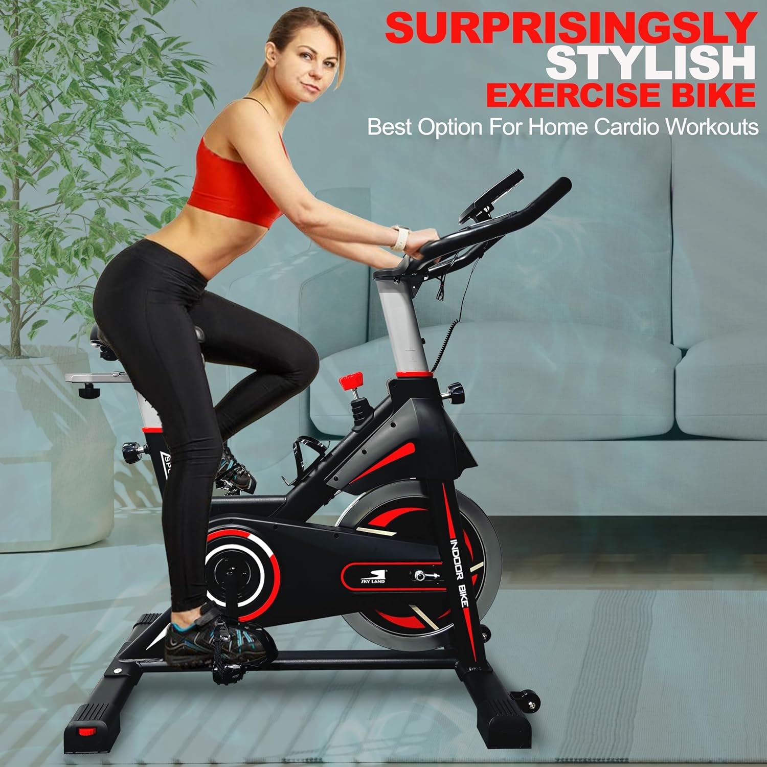 HEAVY FLYWHEEL & BELT DRIVE FOR SMOOTH RIDES: This spin bike is equipped with a heavy-duty flywheel and a high-quality belt drive system, ensuring a quiet and smooth cycling experience. Designed for low-impact cardio workouts, making it suitable for all fitness levels.