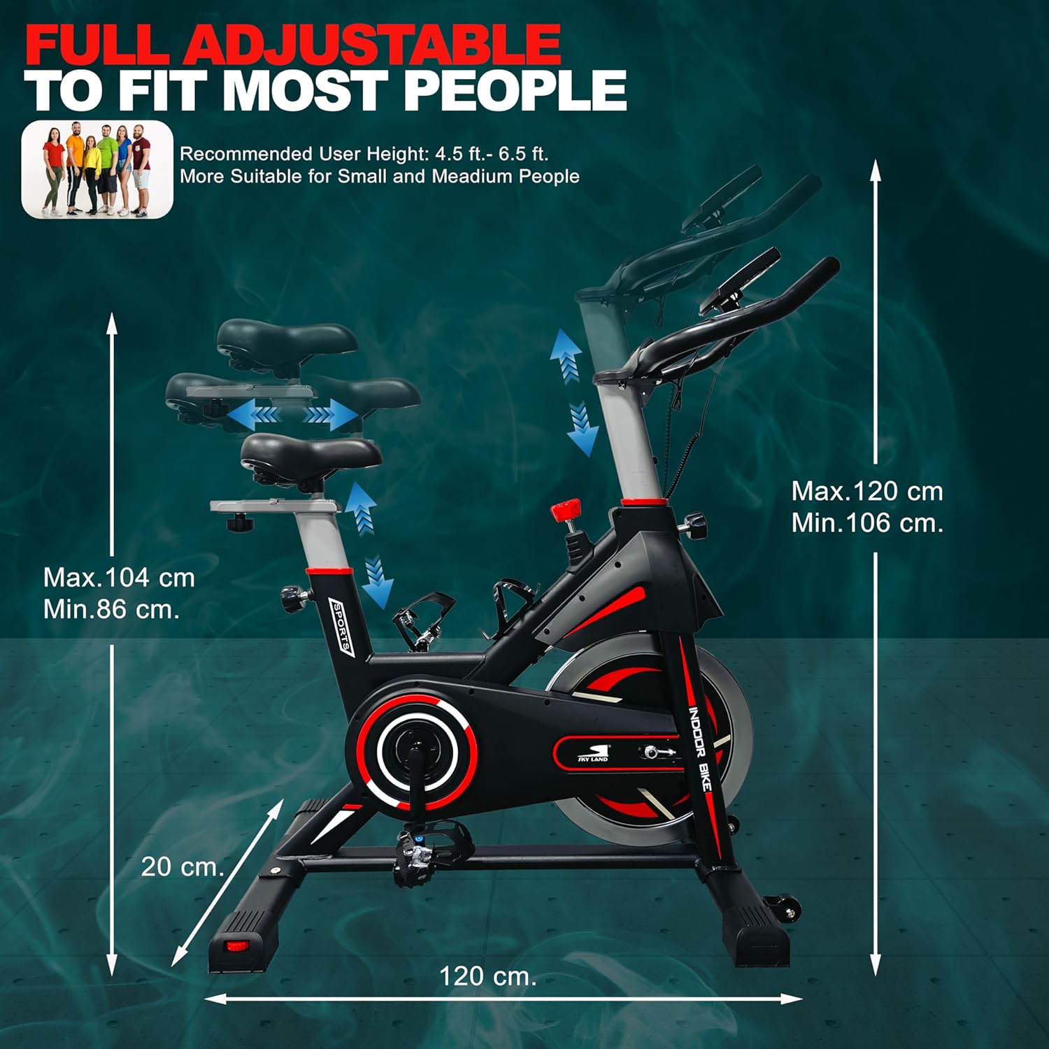 STURDY STEEL FRAME SUPPORTS UP TO 120KG: Built with a robust steel frame, this stationary bike ensures durability and stability during intense rides. The maximum user weight capacity of 120 kg makes it suitable for a wide range of users.