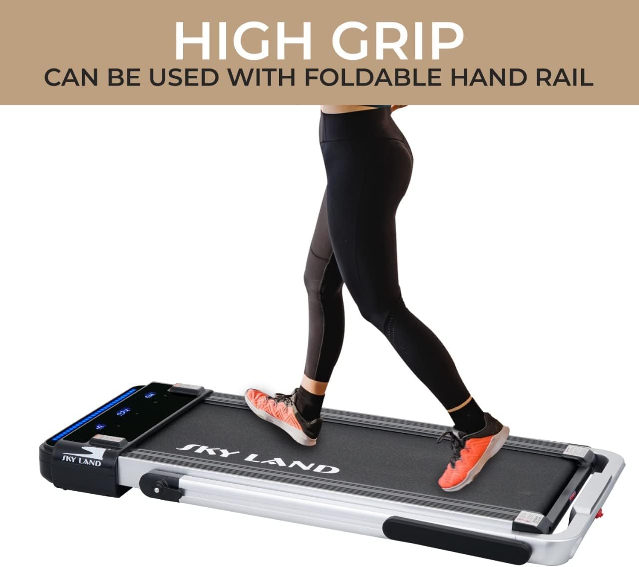 With a 2-in-1 foldable design, it works as a desk walking pad at 1?C6 km/h when the handrail is folded, and as a running treadmill up to 12 km/h when the handrail is raised.