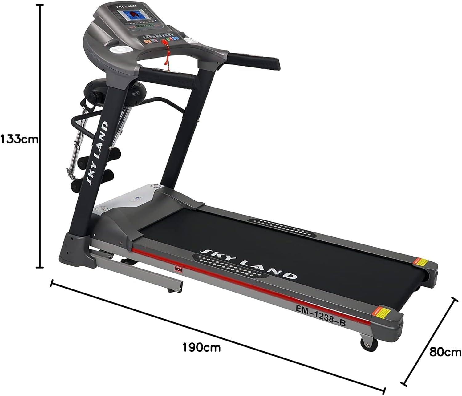 POWERFUL PERFORMANCE: Equipped with a 3.0HP continuous-duty motor, the Skyland EM-1238 Treadmill offers reliable and efficient operation for a dynamic workout experience.