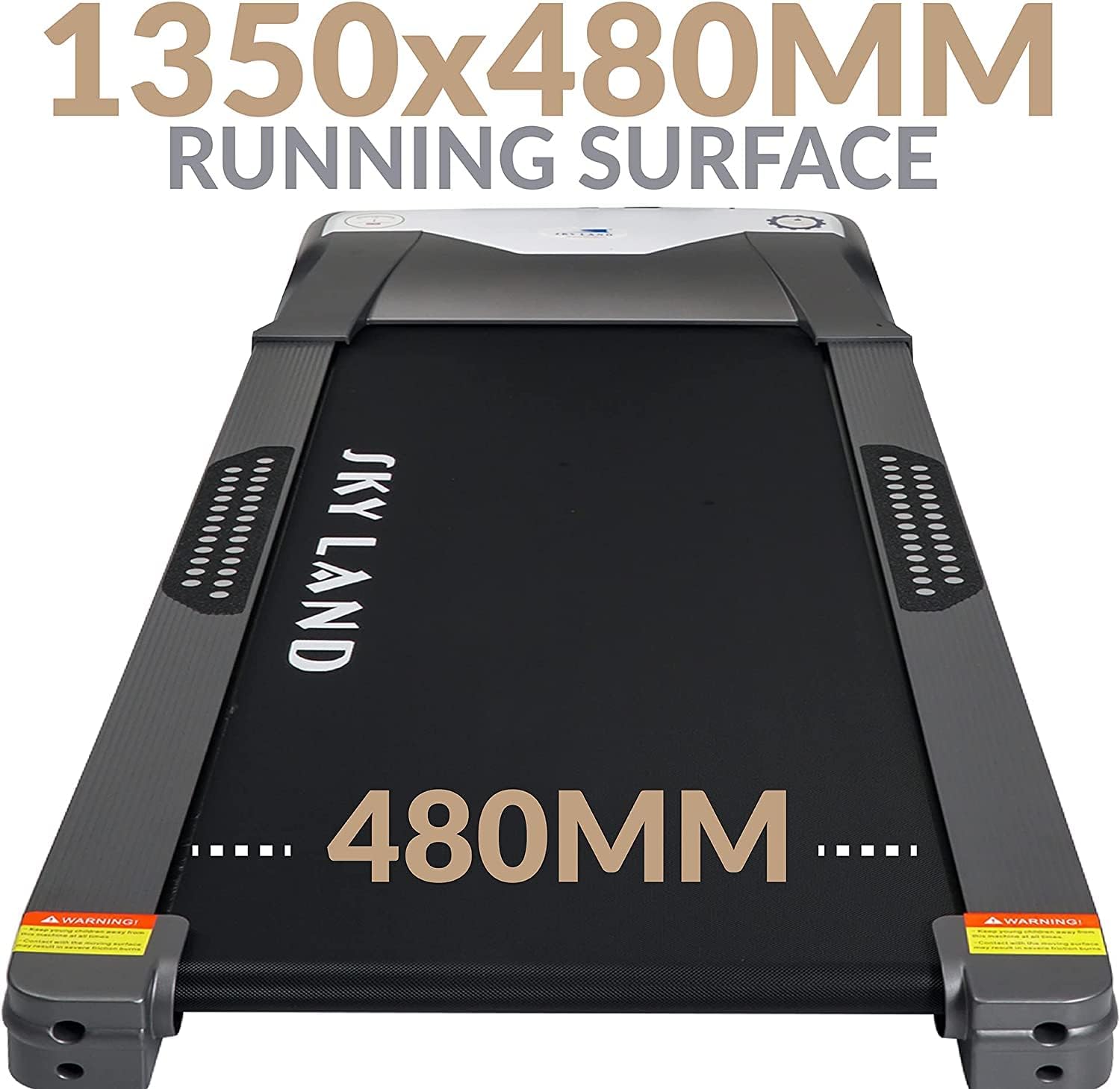 The wide 1350 ?? 480 mm running belt offers enhanced comfort, safety, and reduced joint impact during exercise.