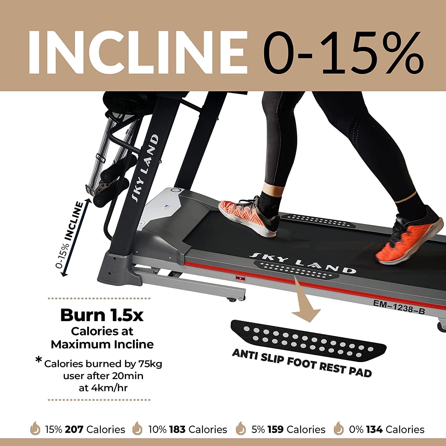 | Screen Display | Time, Speed, Calories, Distance, Pulse, Incline |