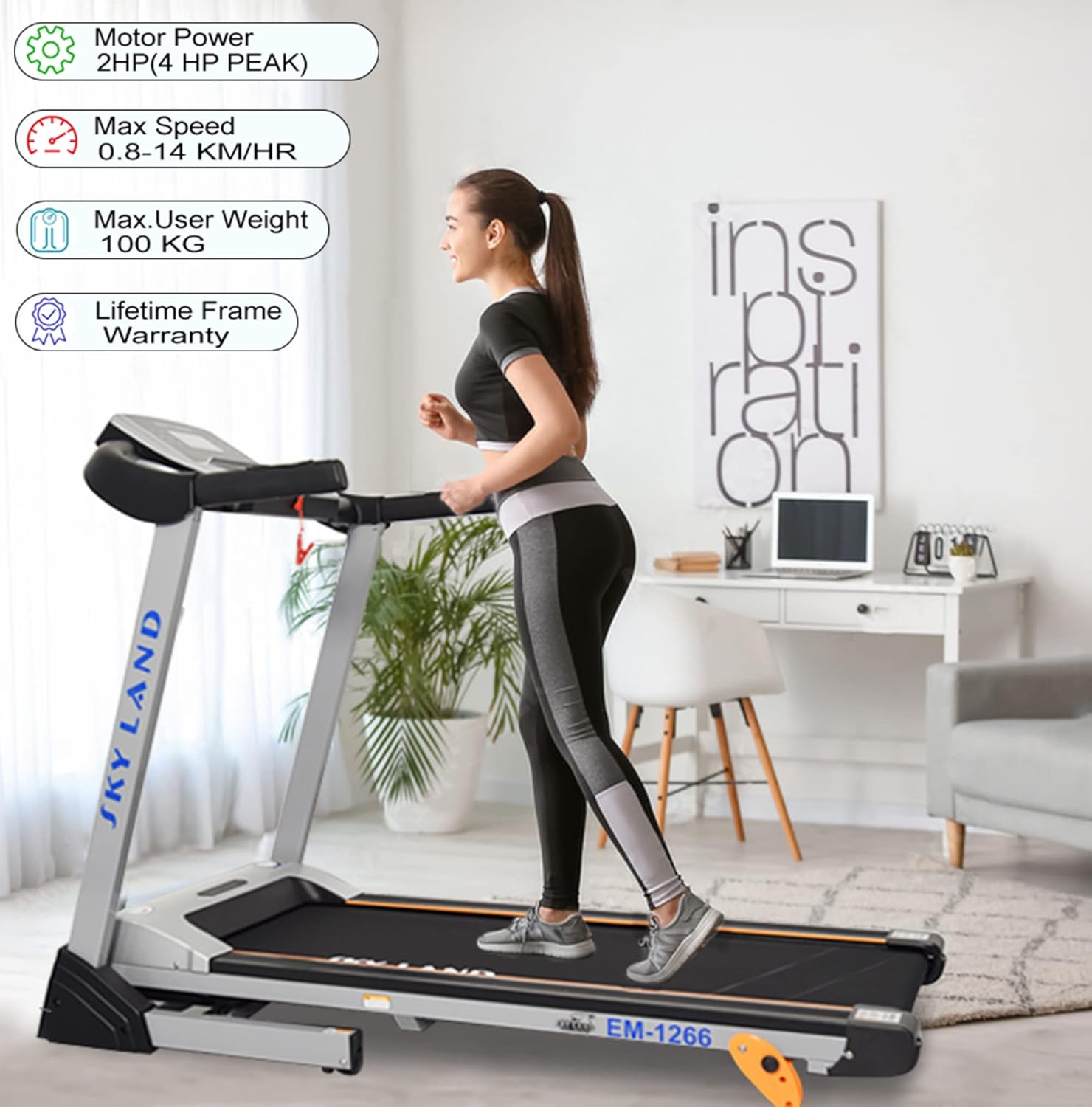 It has a 2 HP DC motor with 4 HP peak, supporting speeds from 0.8?C14 km/h for walking, jogging, or running.