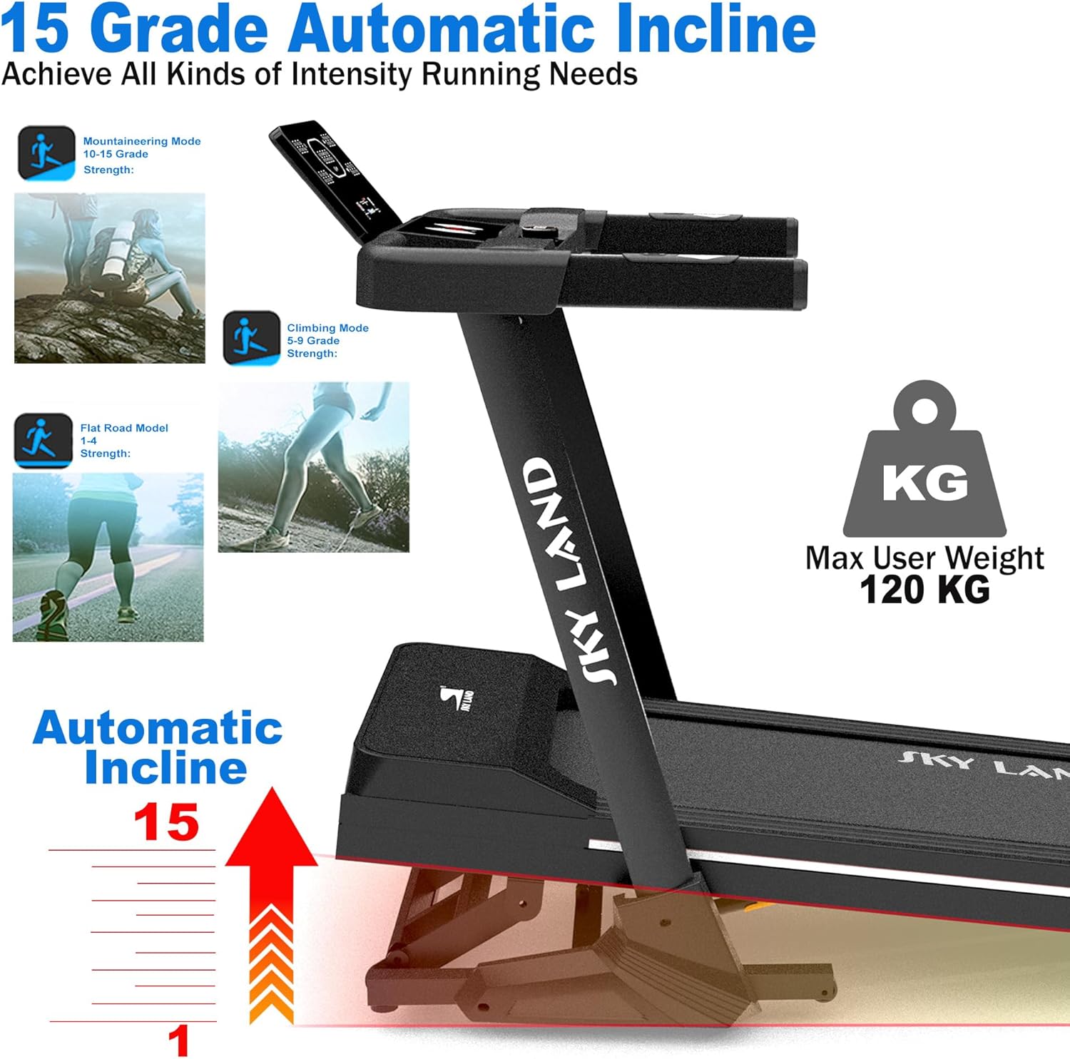 15-LEVEL AUTO INCLINE FOR CHALLENGING WORKOUTS: The automatic incline function with 15 adjustable levels allows you to vary your workouts and target different muscle groups, simulating real-world terrains for a more challenging and effective training session.