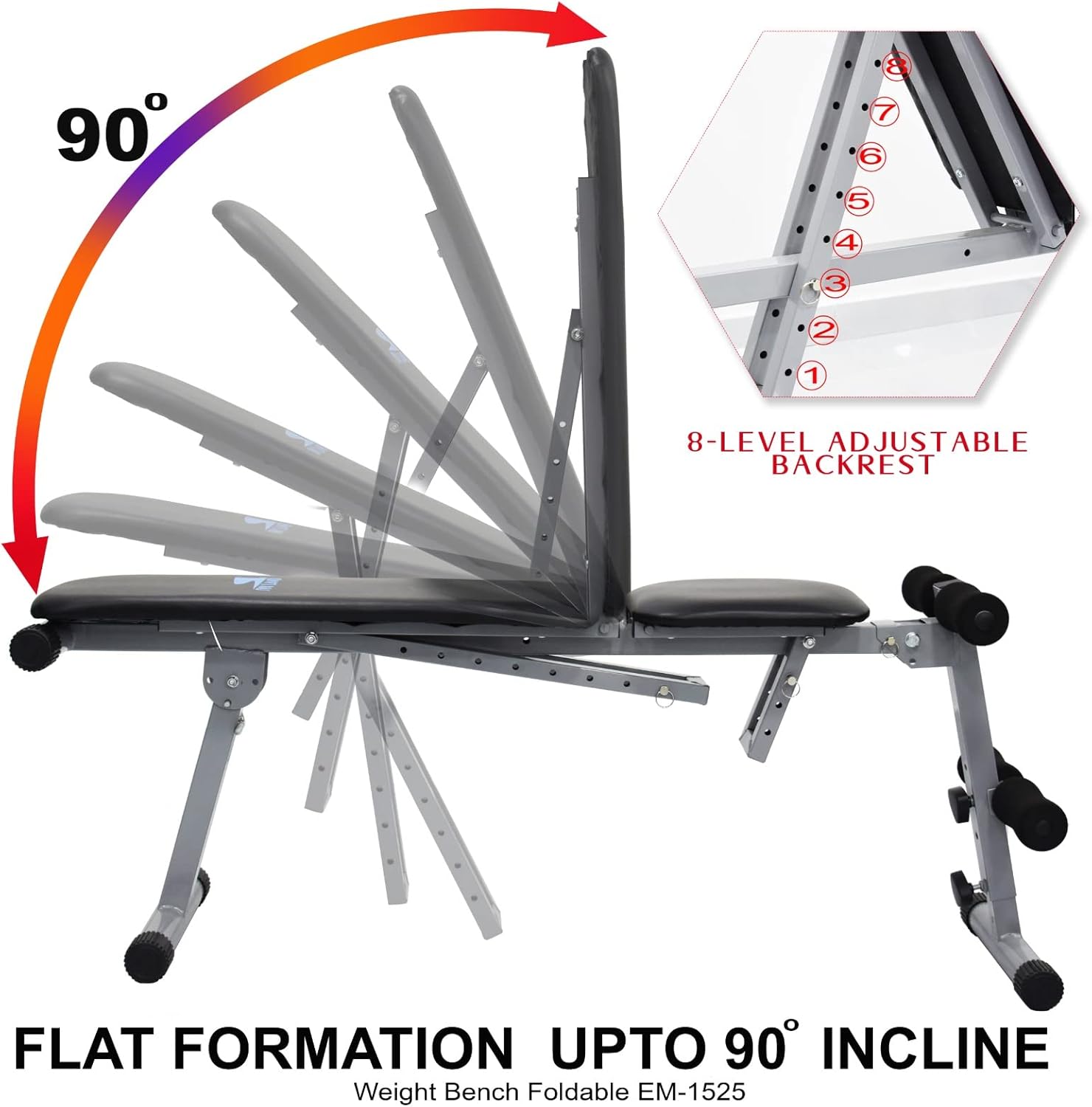 Master your fitness goals with the SKY LAND EM-1525 Adjustable Weight Bench. This versatile piece of equipment is designed to be the centerpiece of your home gym, offering an Adjustable Backrest with 7 different positions ranging from Incline, Flat, to Decline. This flexibility allows you to target specific muscle groups with precision, ensuring a complete upper and lower body workout.