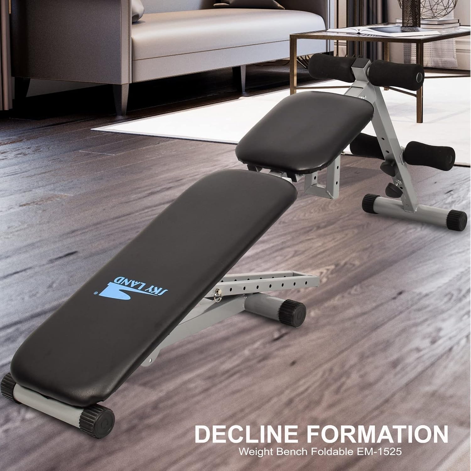 SKY LAND Adjustable Sit-Up Bench, Heavy-Duty Steel Frame, Multi-Angle Positions, Foldable Decline & Incline Workout Bench for Abs, Core, Strength Training & Home Gym Equipment EM-1525