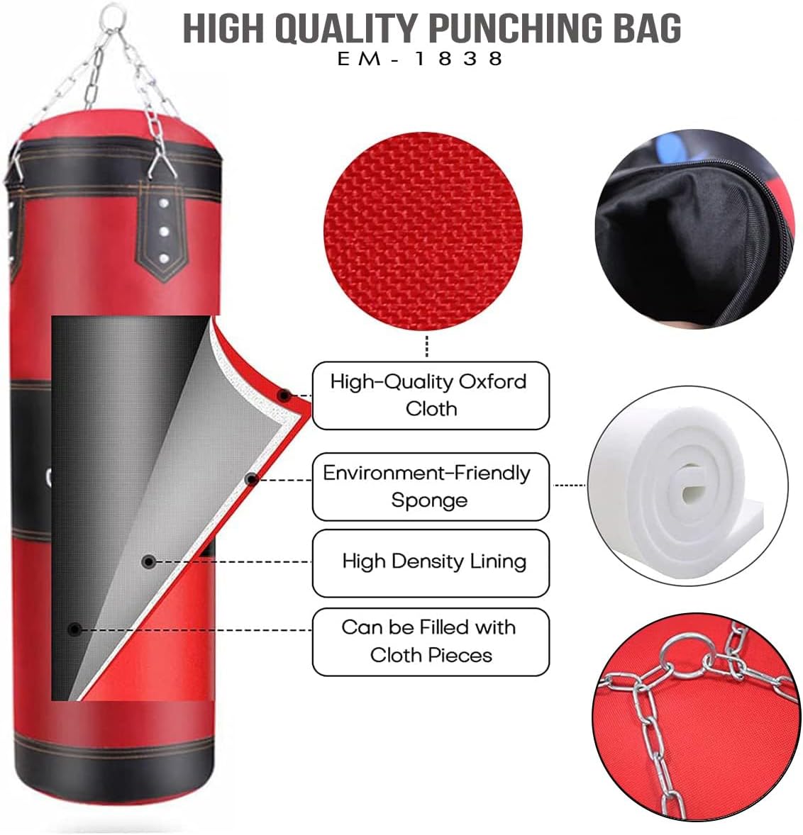 ?Home Grade Equipment? SKY LAND?s Multi-Color Heavy-Duty Boxing Bag (EM-1838) is designed for both home fitness enthusiasts and amateur martial artists practicing MMA, kickboxing, karate, and more.