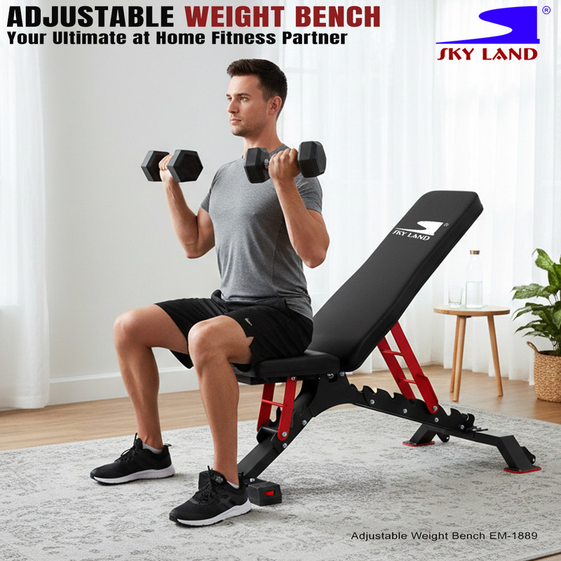 The SKY LAND Adjustable Weight Bench is a 200KG heavy-duty bench for pro strength training. Features multi-position incline/decline angles and thick padding, perfect for bench press, bodybuilding, and home gym workouts.