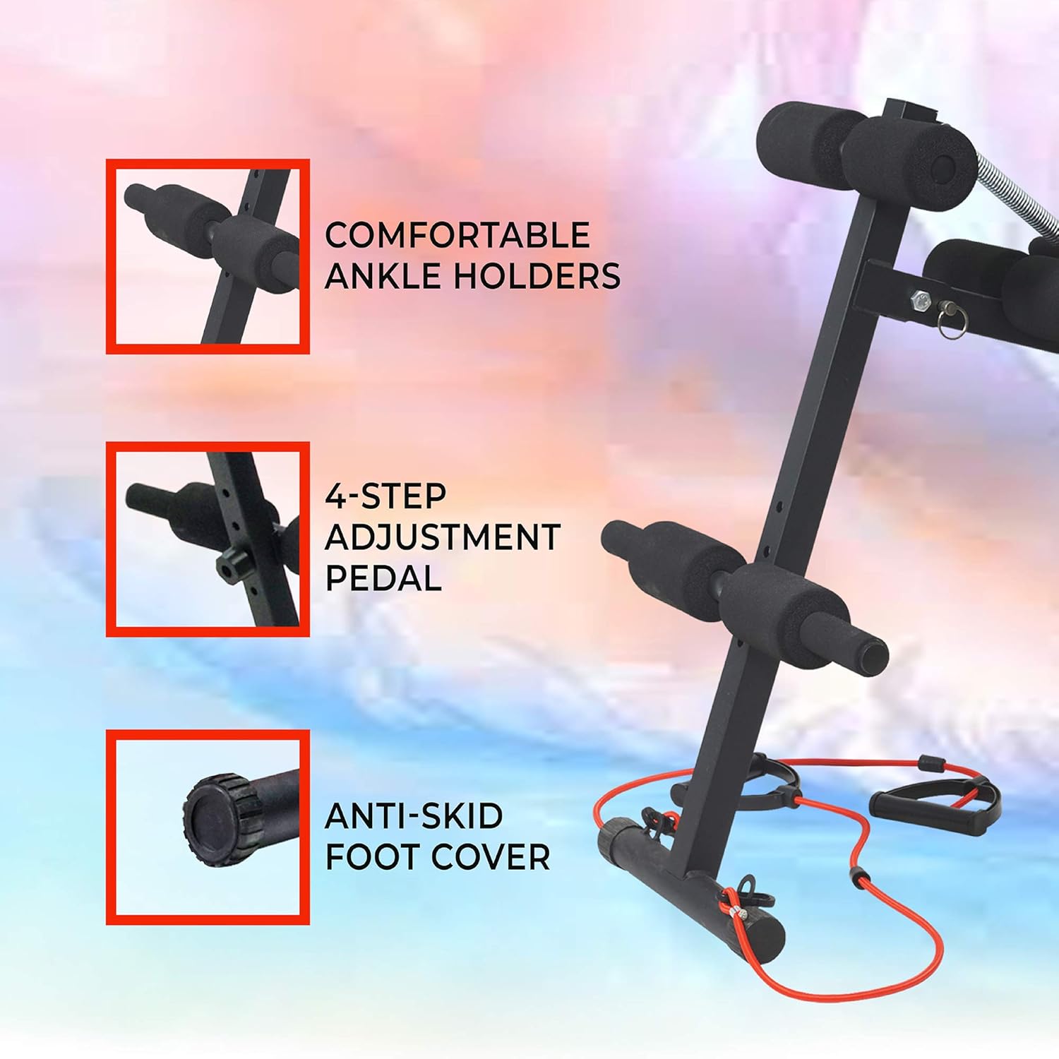 • Comfortable Ankle Holders: Equipped with high-density foam rollers that provide a secure, pain-free grip during intense abdominal sets.