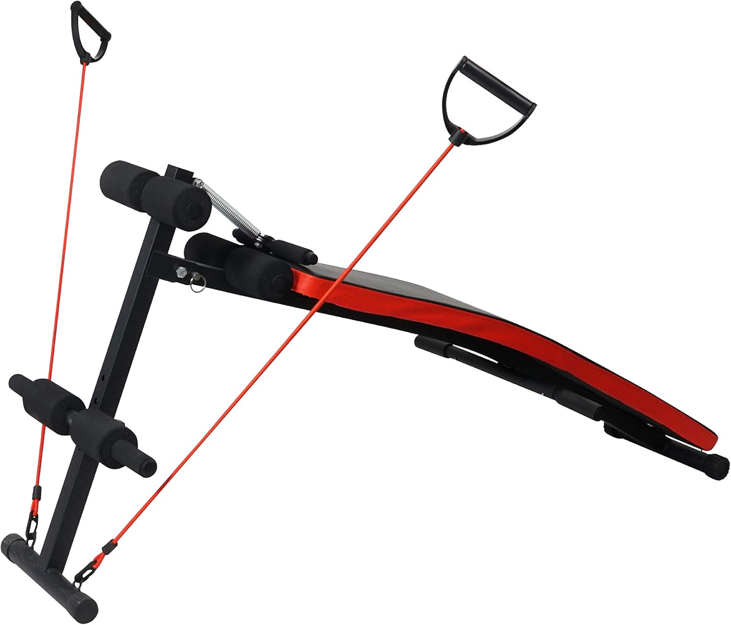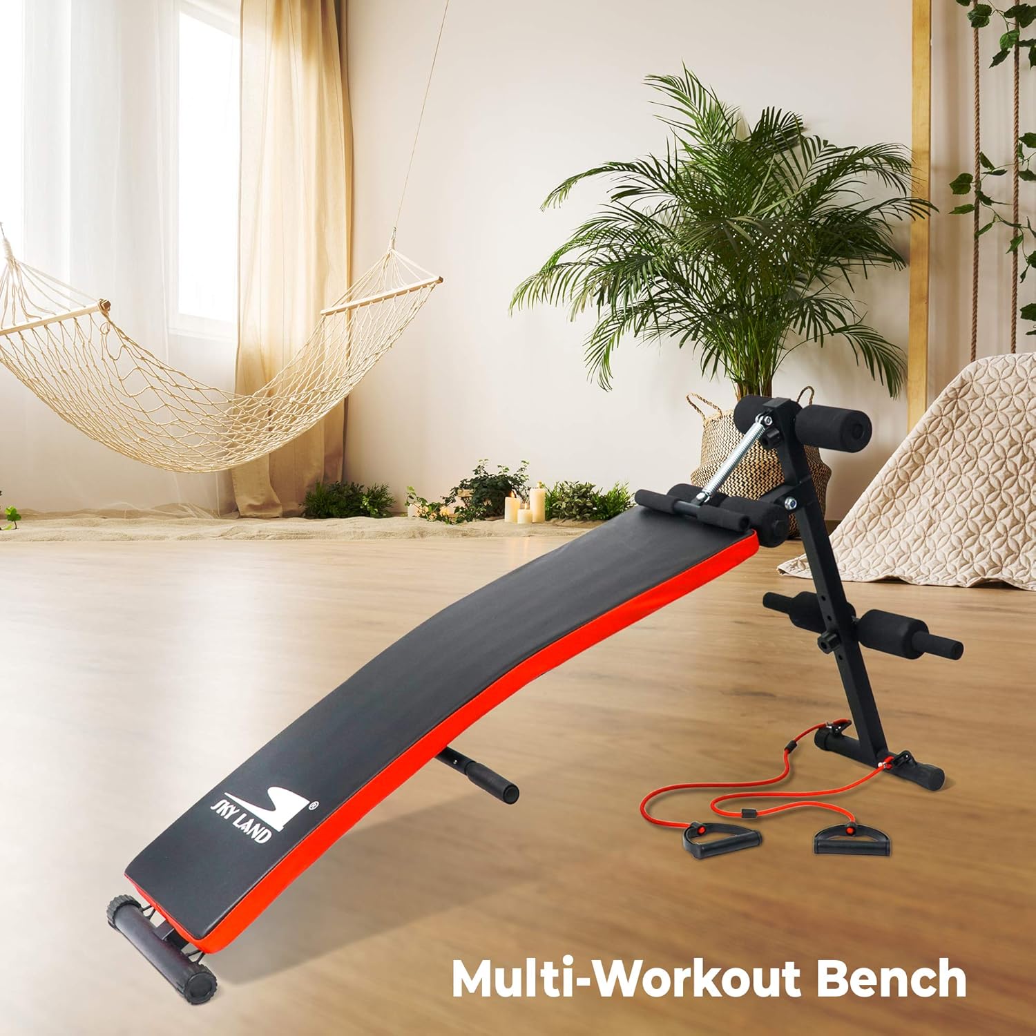 SKY LAND Exercise Bench EM-1856, Multi-Function Curved Sit-Up Bench for Abs & Full Body Workout, Foldable Bench Press Home Gym with Adjustable Leg Support & Resistance Ropes