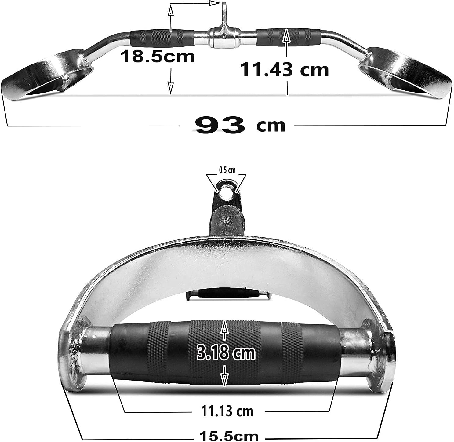 SKY LAND Lat Pull Down Bar With Revolving Cable Attachment Chrome Curve V Shape Bar With-D- Shaped Handles & Rubber Handgrips – EM-9233-R, Black/Chrome,