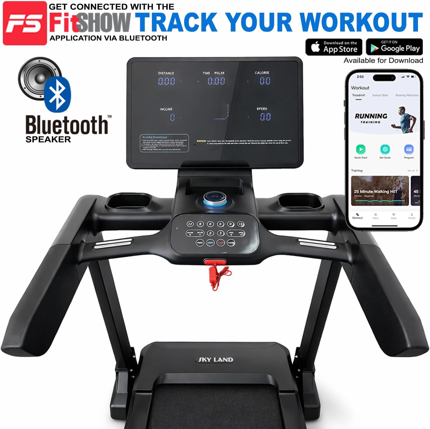 Boost your cardio routine with the SKY LAND EM-1310 treadmill, featuring a 3.5HP motor, 20% auto incline, Bluetooth app support, and a foldable heavy-duty frame for home workouts.