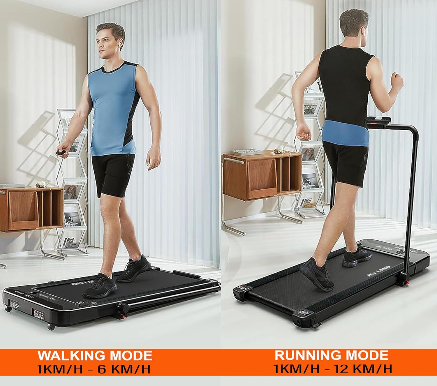 ? [VERSATILE FOLDING TREADMILL]: Introducing the SKY LAND EM-1294 treadmill, a 2-in-1 marvel that functions as both a walking pad for brisk strolls and a high-speed running treadmill. This ingenious design ensures you can seamlessly maintain your exercise regime even while working, providing utmost convenience.