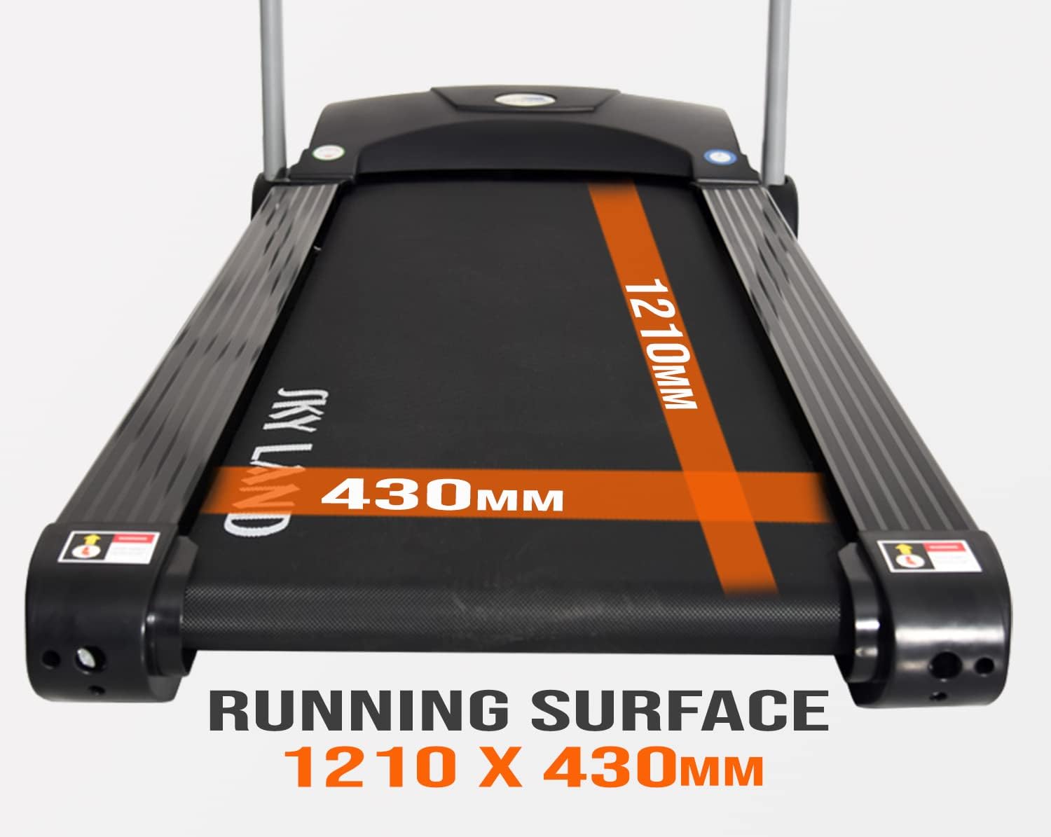 WIDE RUNNING BELT WITH SHOCK ABSORPTION SYSTEM Equipped with a 43cm wide textured running belt and advanced shock absorption, this treadmill reduces joint impact and improves comfort??perfect for long treadmill sessions at home.