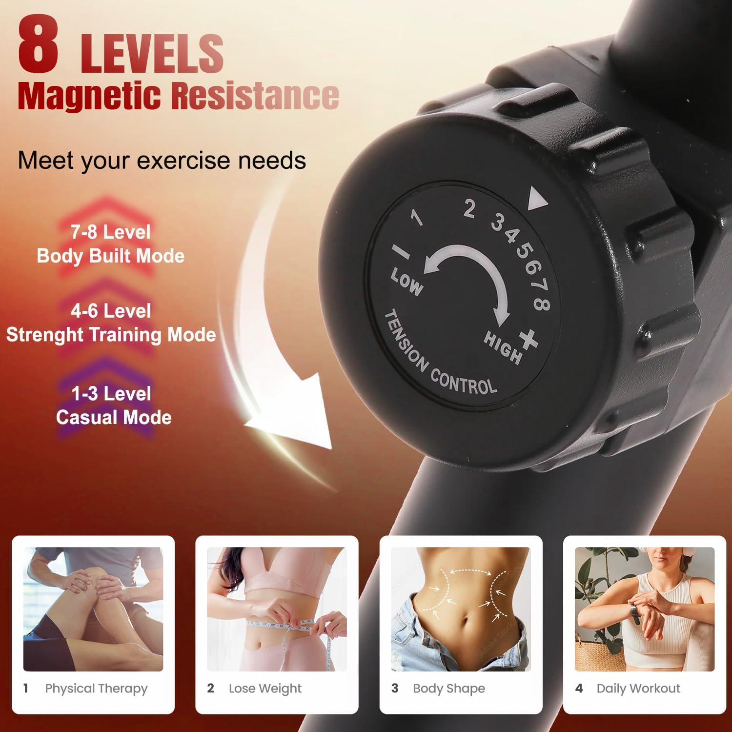 8-LEVEL MAGNETIC RESISTANCE FOR CUSTOMIZED TRAINING INTENSITY Switch between 8 magnetic tension levels to match your fitness goals??ideal for weight loss, endurance building, toning, and beginner-to-advanced cardio workouts.